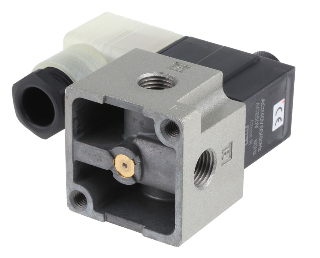 A selection of direct operated 3 port poppet type solenoid operated spring return valves. Selective porting can be provided from these valves for up to 6 different valve functions.