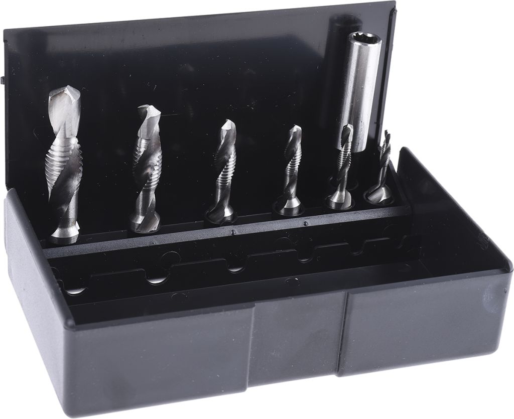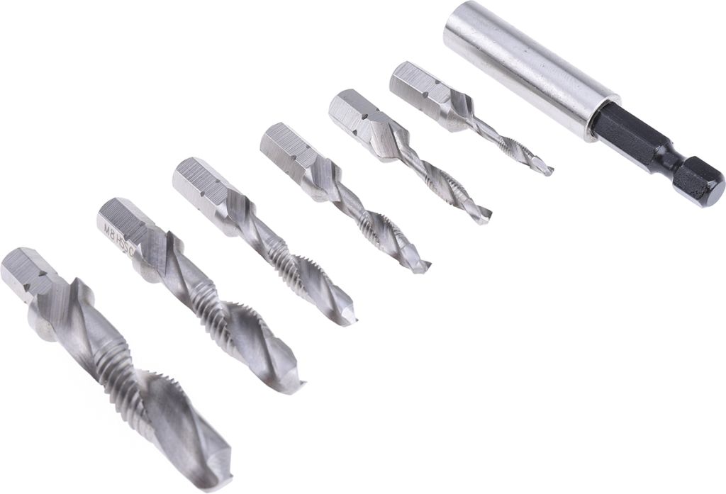 From RS PRO, this comprehensive steel tap set is perfect for professional applications. Constructed from HSS (high-speed steel,) the set includes drill, tap and countersink bits. The kit is applicable for tapping of through holes, and contains pieces suitable for a variety of hole sizes.