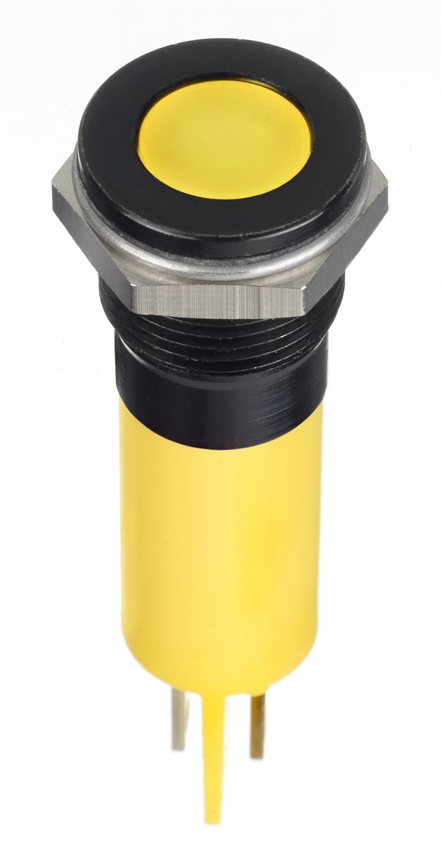 12 mm flush bezel panel mount LED indicators. Supplied with fixing nut and spring washer.