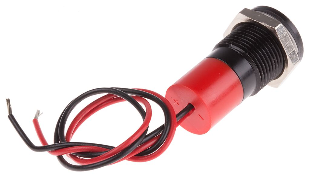 Product description RS PRO Red Indicator, 220V ac, 14mm Mounting Hole Size, Lead Wires Termination, IP67