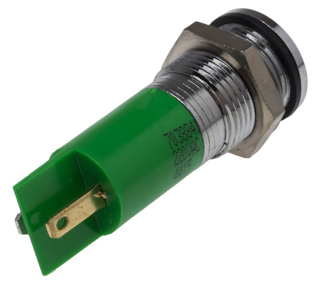 | Product description | RS PRO Green Indicator, 220V ac, 14mm Mounting Hole Size, Solder Tab Termination, IP67 |
