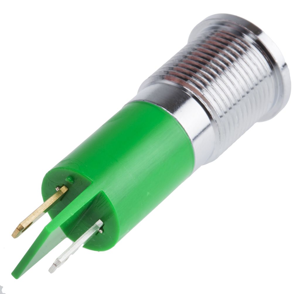 Product description RS PRO Green Indicator, 6 → 36V dc, 14mm Mounting Hole Size, Solder Tab Termination, IP67