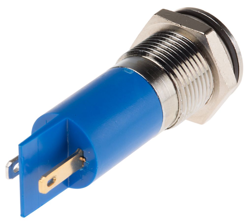 RS PRO Blue Indicator, 220V ac, 14mm Mounting Hole Size, Faston, Solder Lug Termination, IP67