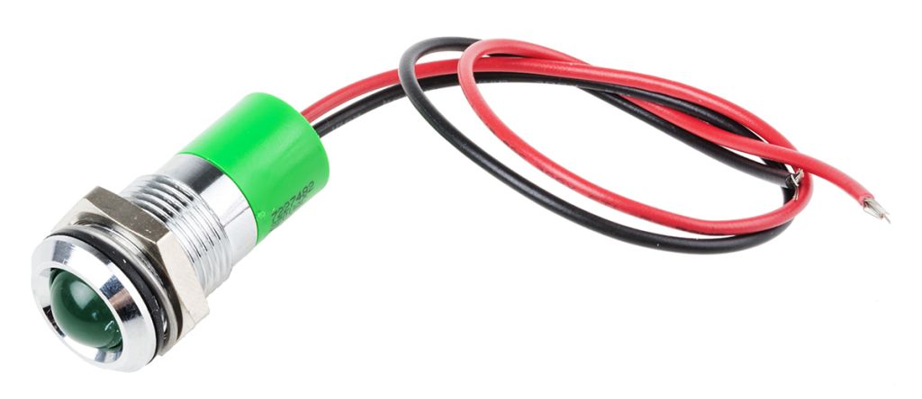 | Product description | RS PRO Green Indicator, 220V ac, 14mm Mounting Hole Size, Lead Wires Termination, IP67 |