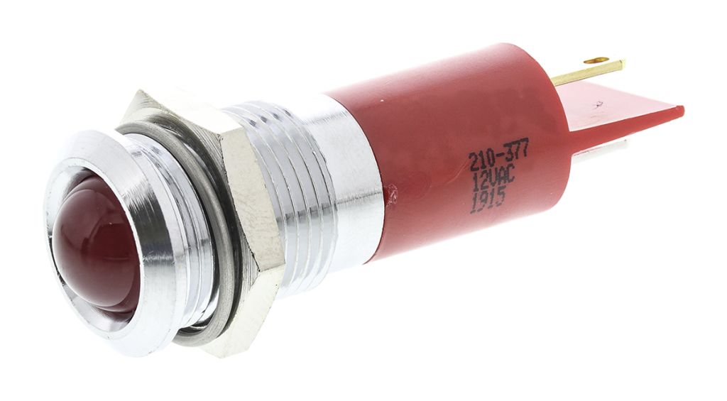 | Product description | RS PRO Red Indicator, 12V ac, 14mm Mounting Hole Size, Solder Tab Termination |
