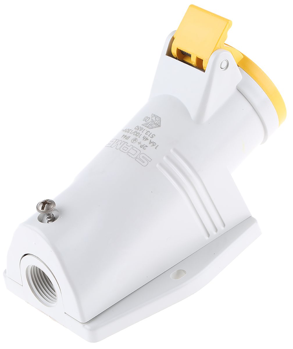 Scame IP44 Yellow Wall Mount 2P+E Right Angle Industrial Power Socket, Rated At 16A, 110.0 V