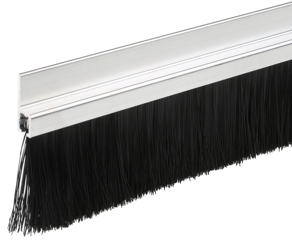 From RS Pro a high-quality brush strip or brush seal which is a type of draught excluder designed to seal the gap between the bottom of a door and the floor to prevent draughts and keep in heat. As well as draught proofing, this brush strip also helps prevent dust and debris like leaves and litter from entering the threshold of a building or factory from outside. The brush strip consists of an aluminium carrier with a 180° mounting angle containing a brush made up of a row of black nylon bristles. The strip can be cut to size to provide an accurate fit to any door