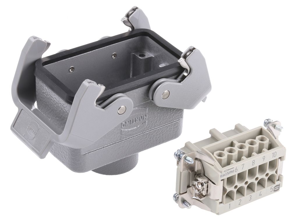 From Harting, this combination of components is part of the Han E range of Connector Assembly Packs.