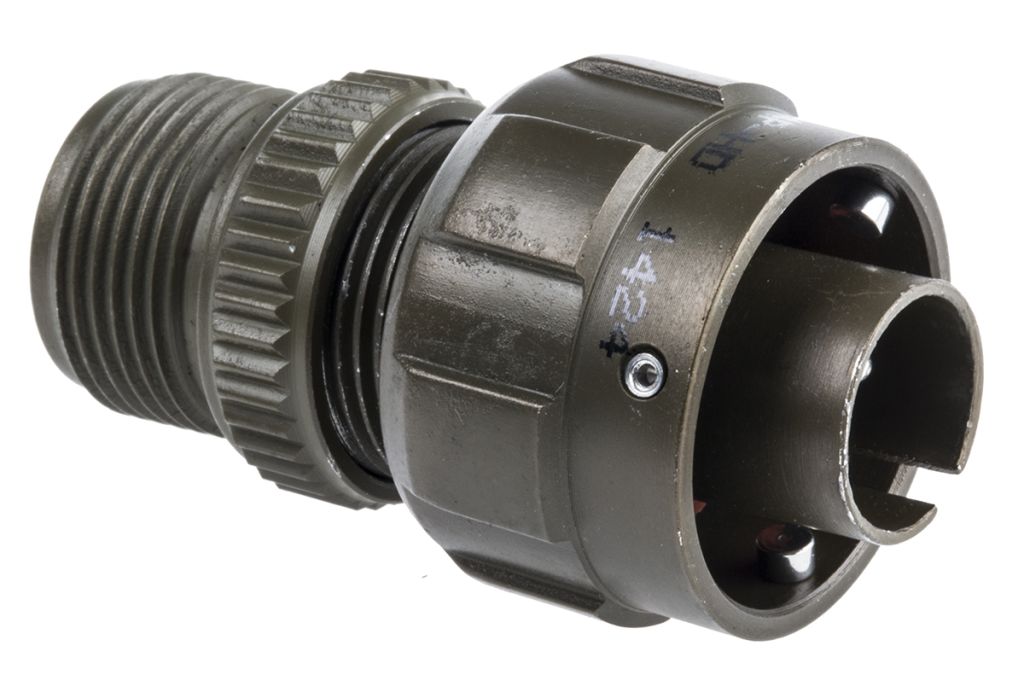 Bayonet locking, circular connectors which conform to MIL-C-5015 and are interconnectable with BS 9522 F0032 specification connectors.,All connectors, with the exception of four types, have size 16 contacts. The exceptions are as follows, with the contact size indicated within brackets - 20-A9 (size 12), 22-2 (size 8), 22-22 (size 8), and 24-2 (size 12). These connectors have a backshell (spacer tube) which may have to be discarded for certain cable clamps to be fitted.
