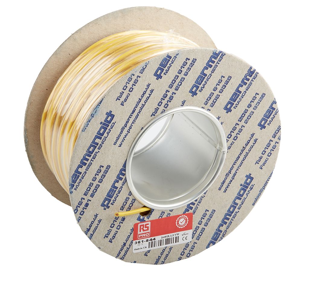 | Product description | RS PRO Yellow 1.5 mm² Equipment Wire, 15 AWG, 30/0.25 mm, 100m |