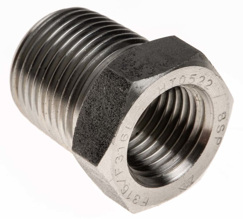 | Product description | RS PRO Stainless Steel Hexagon Straight Bush 3/8in R(T) Male x 1/4in Rc(T) Female 0.67in |