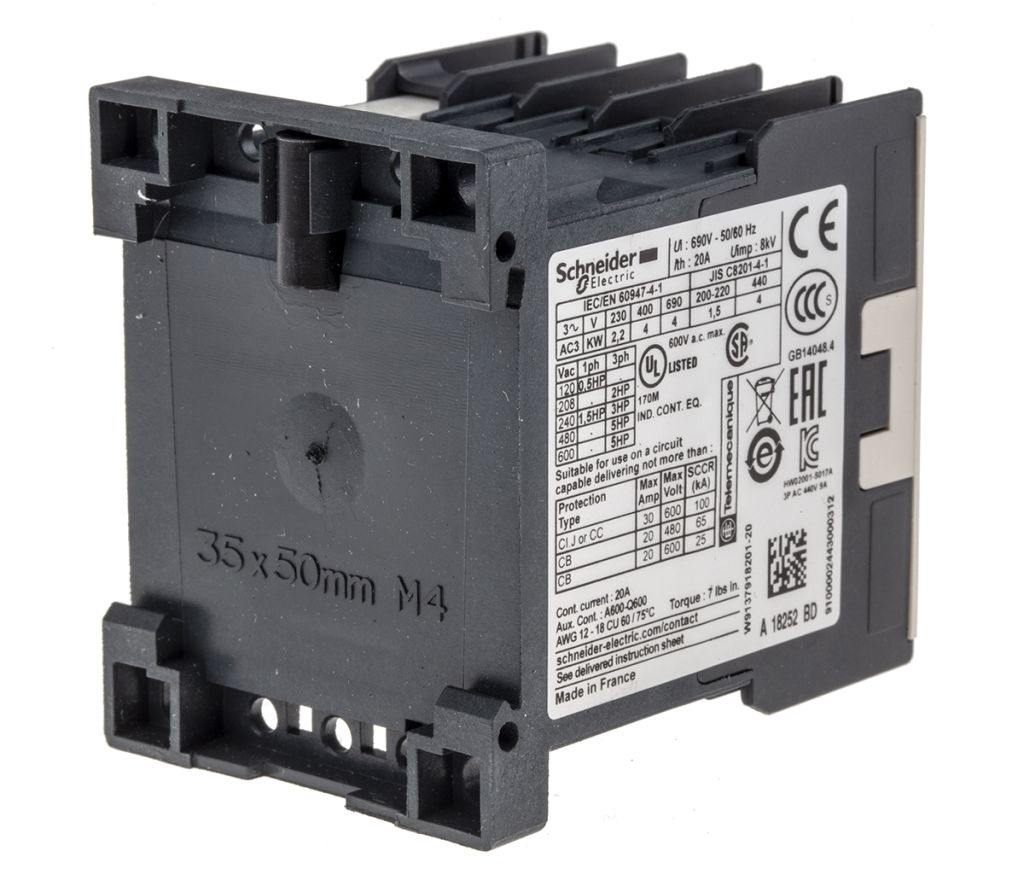 | Product description | Schneider Electric TeSys K LP1K 3 Pole Contactor - 9 A, 24 V dc Coil, 3NO, 4 kW |