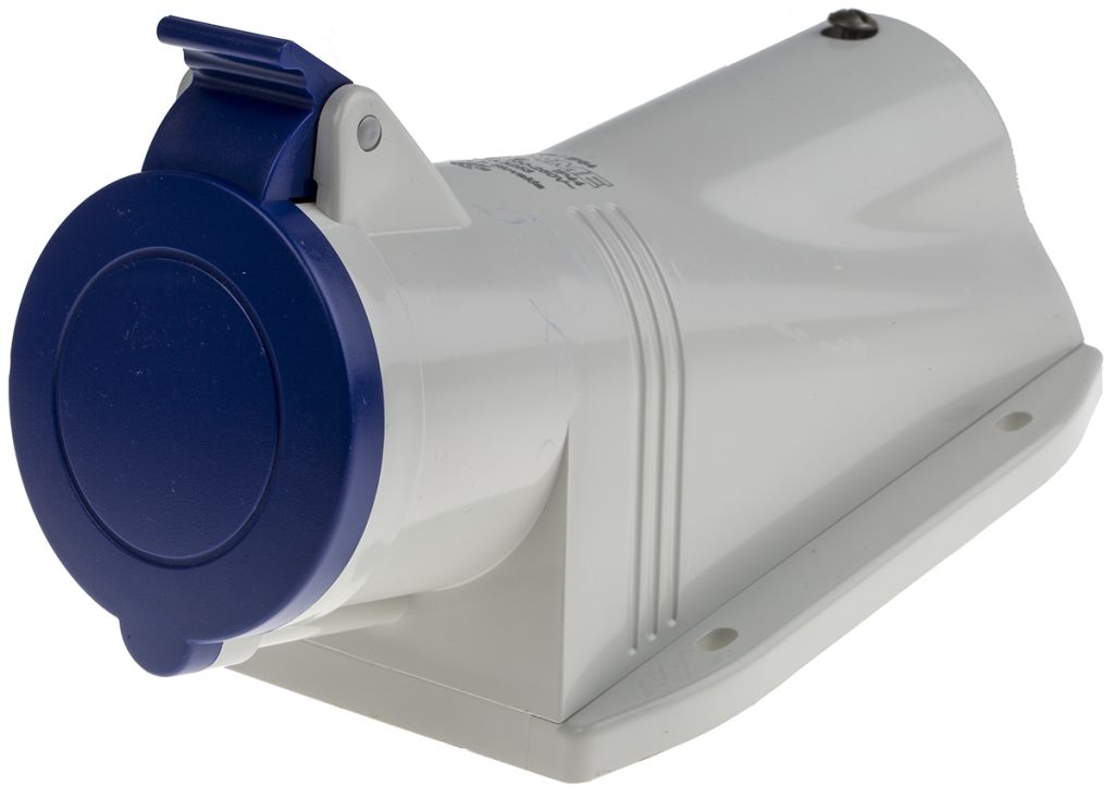 | Product description | Scame IP44 Blue Wall Mount 2P+E Right Angle Industrial Power Socket, Rated At 32A, 230.0 V |