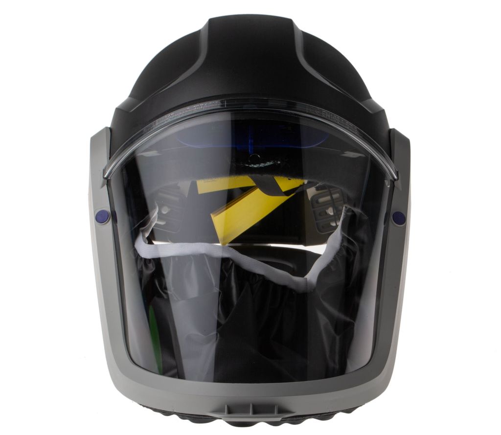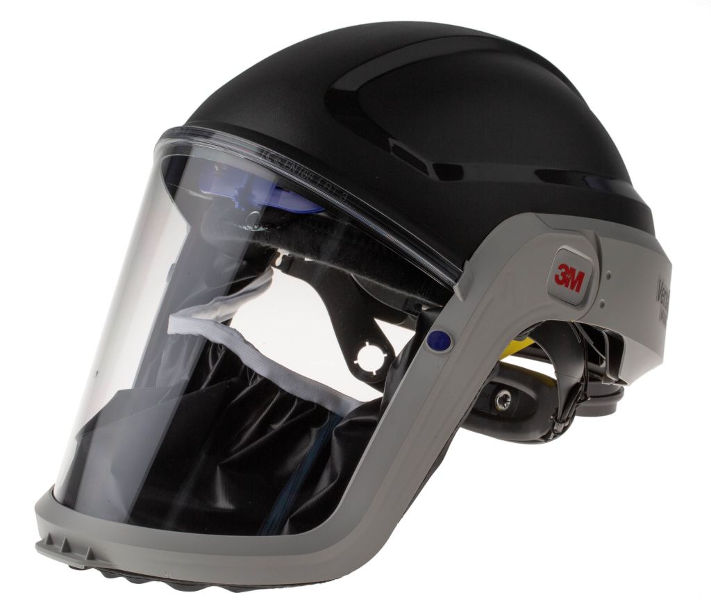 3M™ Versaflo™ M 307 Helmets provide respiratory, eye (EN166 Medium Impact), face protection and head protection (EN397), essential for areas where head protection is mandatory, for example construction sites. The helmet also features a flame resistant face seal for applications with sparks and hot particles. M 307 helmets meet the highest respirator performance requirements (TH3) for this type of product when used with specific 3M™ Air Delivery Units.