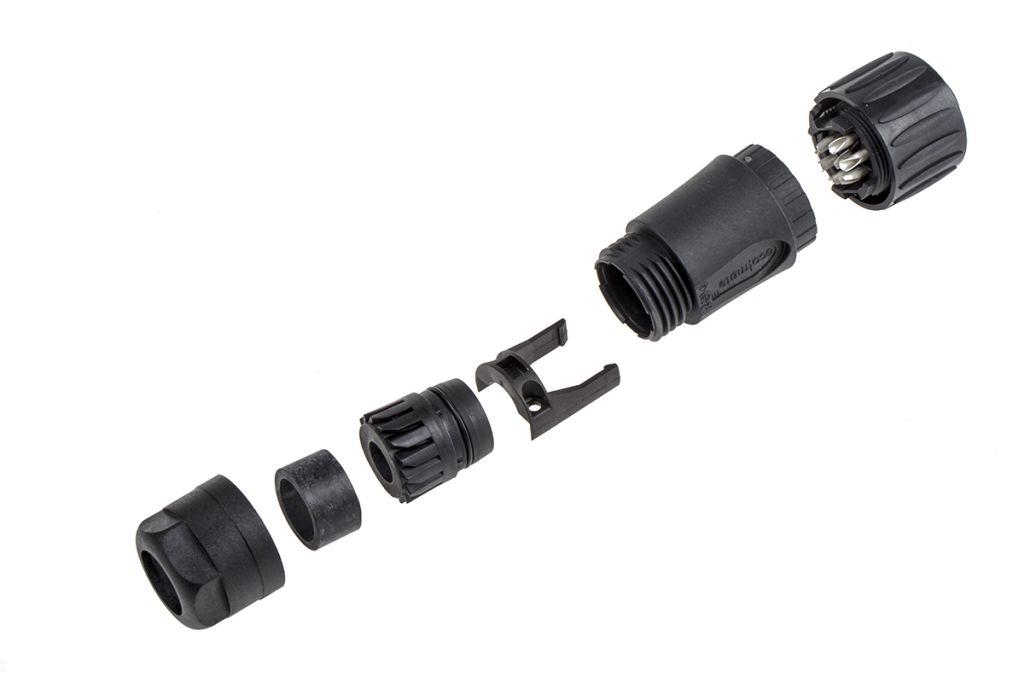 From Amphenol, a selection of cable mount plugs and female cable receptacles from the EcoMate C16-1 series. The rugged circular connectors are ideal for industrial, transportation and process control applications. A threaded coupling mechanism and ridged locking ring ensure safe and secure mating preventing accidental disengagement. With an option of screw or solder termination, the EcoMate plugs and receptacles can be assembled quickly on site or in the field supporting rapid repair and eliminating valuable downtime.