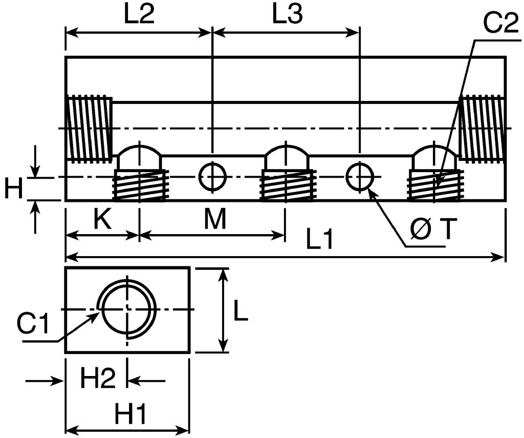 Single sided manifolds to be used for the distribution of compressed air. A wide range of threads and outlets are available.
