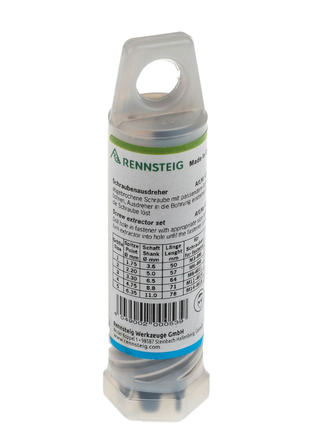 | Product description | RS PRO 5 piece Chrome Vanadium Steel Screw Extractor Set |