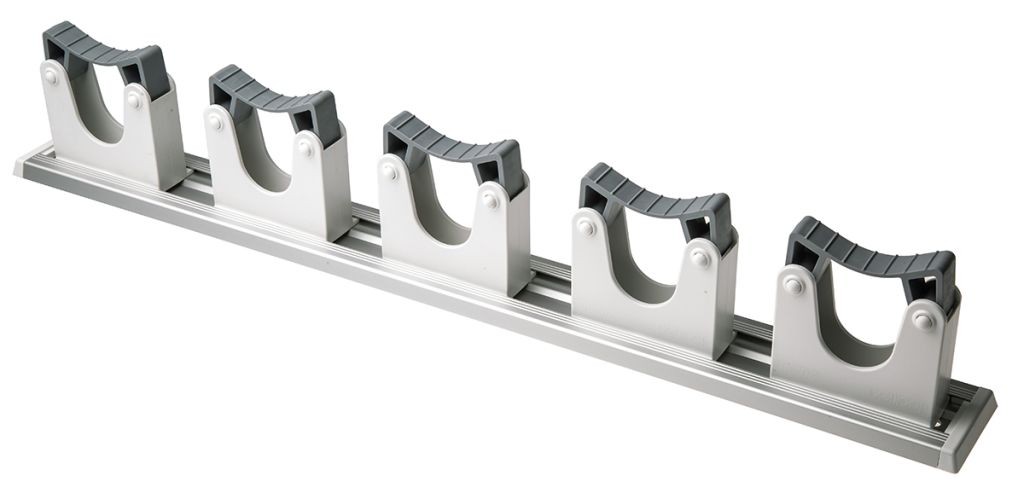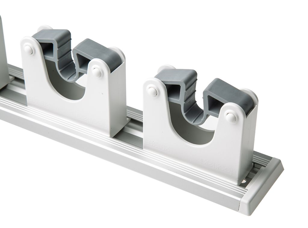 From RS PRO, this multi-functional wall bracket has an easy-to-use snap-in action. Simply press the tool handle or pipe against the plastic gripper, and it will compress around the shaft to support it in place. The tools can be removed just as easily.