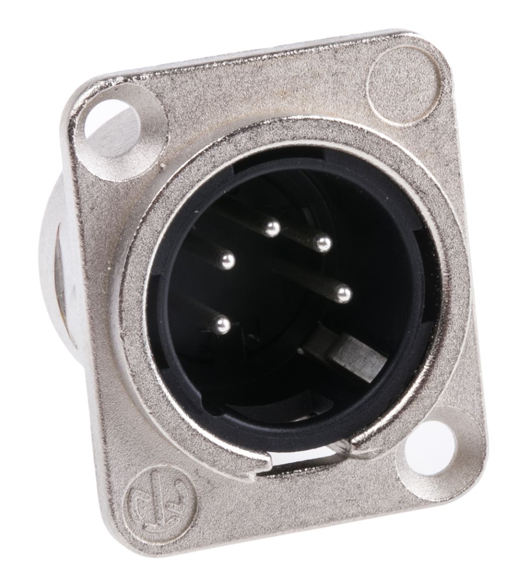 | Product description | Neutrik Panel Mount XLR Connector, Male, 50 V, 5 Way, Silver over Nickel Plating |