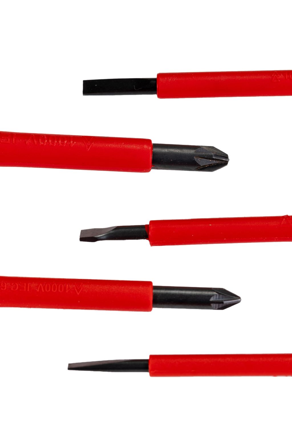 Insulated screwdrivers. Set contents: 0.5x3x100mm, 0.8x4x100mm, 1x5.5x125mm, Pz1x80, Pz2x100,