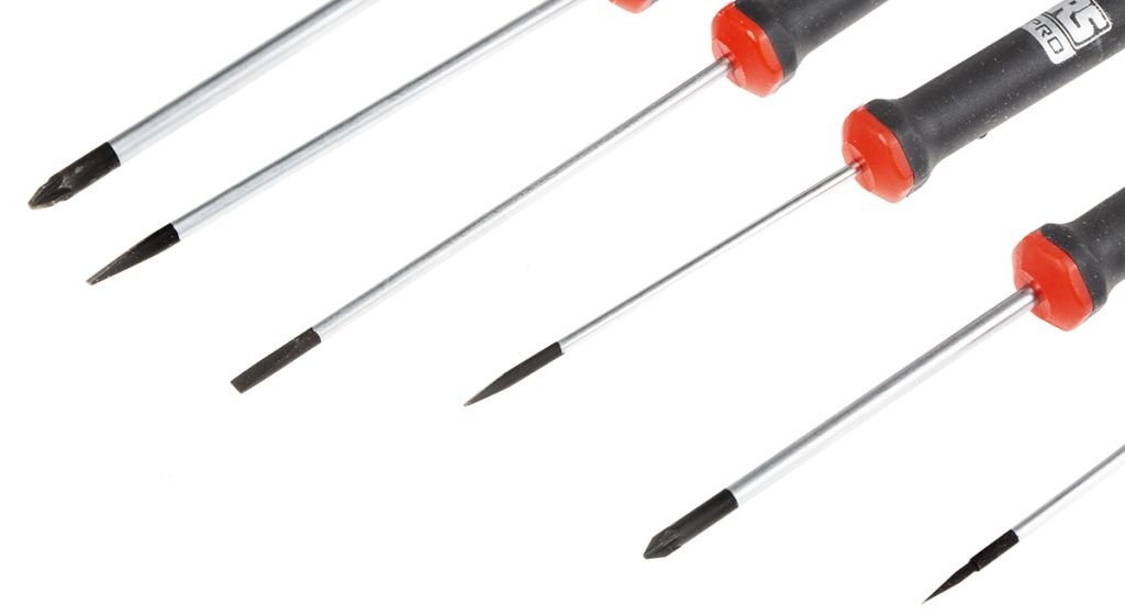 Electronics slotted-pozidriv screwdriver set from RS Pro. Designed for delicate precision engineering and electronics applications.