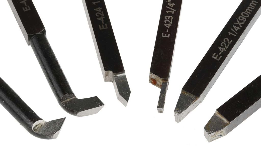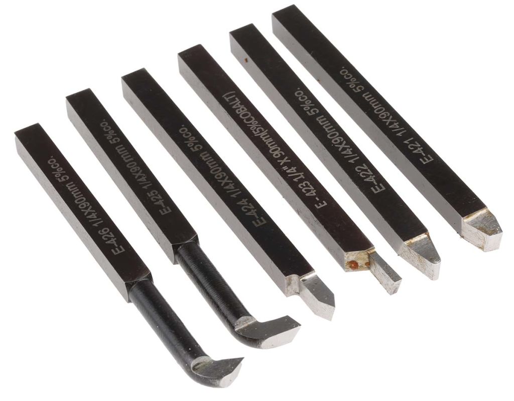 • The RS PRO lathe tool set contains 6-pieces for roughing, finishing, parting-off, boring, external threading and internal threading