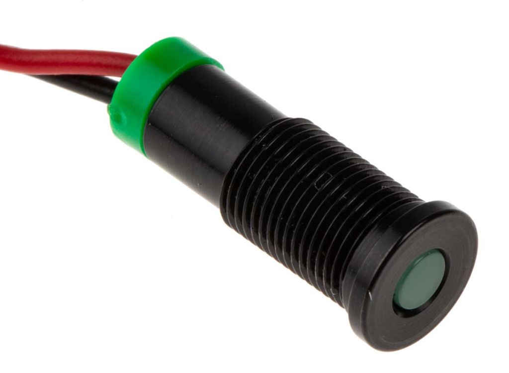 | Product description | RS PRO Green Indicator, 2V dc, 6mm Mounting Hole Size, Lead Wires Termination, IP67 |