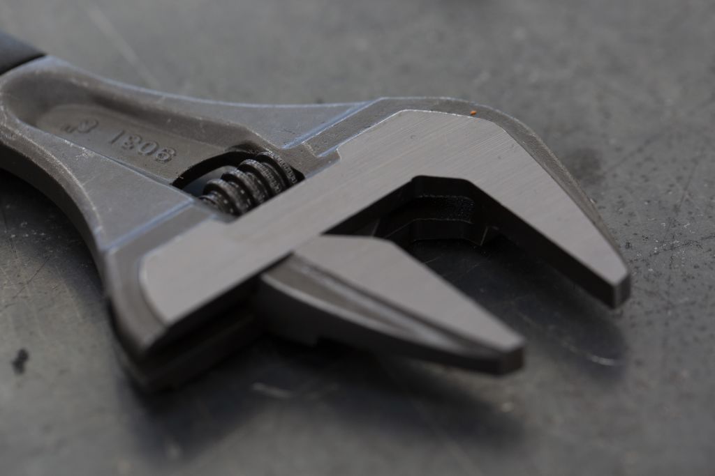 An 8in wrench with wider opening and extra thin jaws. 40% wider opening and 45% thinner jaws when compared to a standard adjustable wrench of equivalent size.