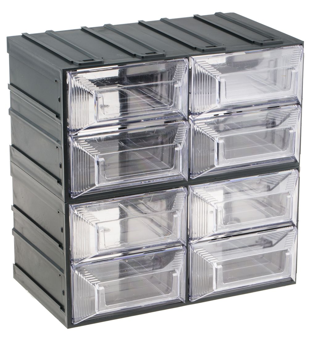 "RS PRO 8 Drawer Storage Unit, Plastic, 208mm x 208mm x 132mm, Transparent" added to the basket