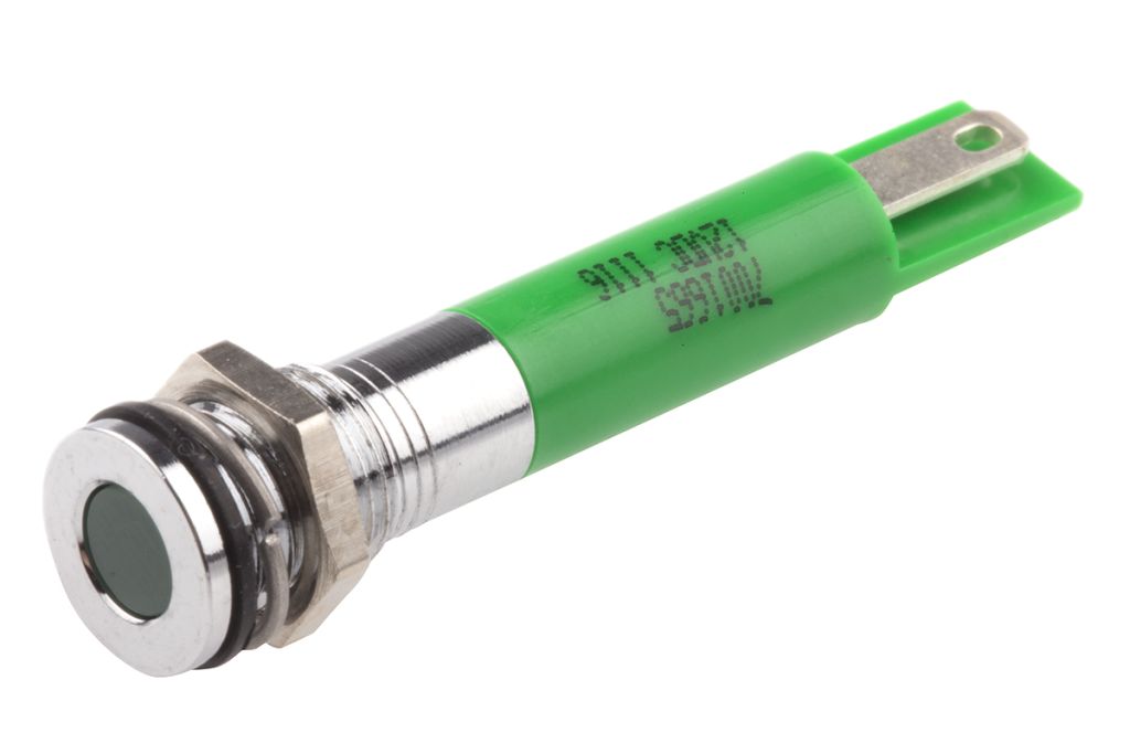 | Product description | RS PRO Green Indicator, 12V dc, 8mm Mounting Hole Size, Solder Tab Termination, IP67 |