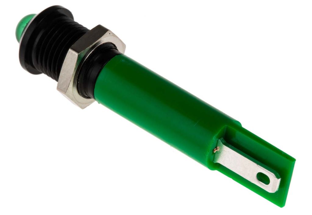| Product description | RS PRO Green Indicator, 24V dc, 8mm Mounting Hole Size, Solder Tab Termination |