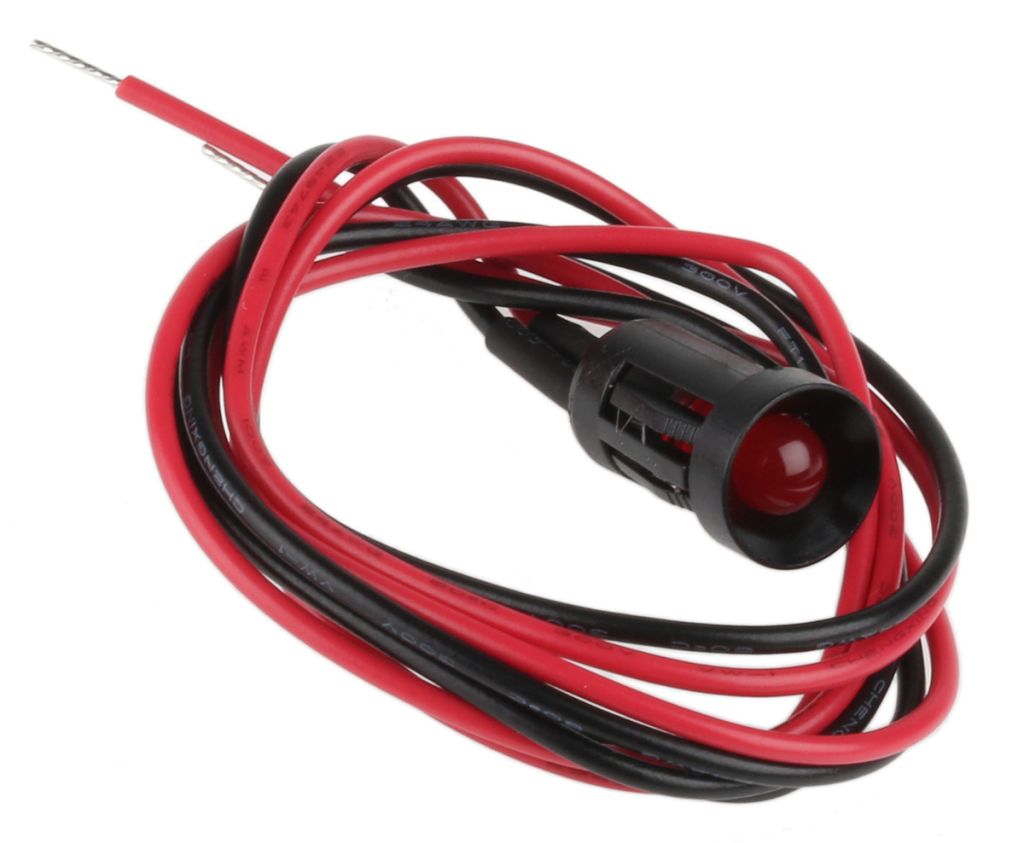 Product description RS PRO Red Indicator, 24V dc, 8mm Mounting Hole Size, Lead Wires Termination