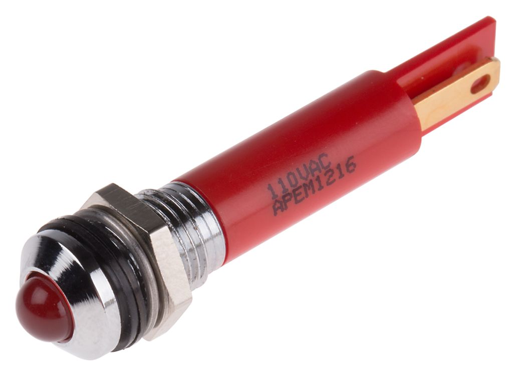 | Product description | RS PRO Red Indicator, 110V ac, 8mm Mounting Hole Size, IP67 |