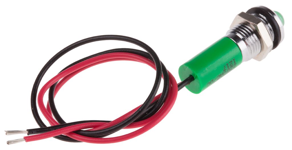 | Product description | RS PRO Green Indicator, 220V ac, 8mm Mounting Hole Size, Lead Wires Termination, IP67 |