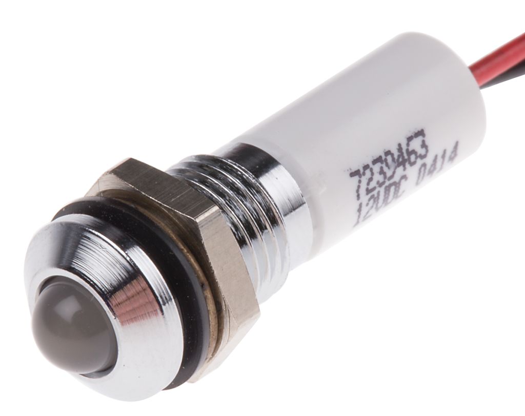 | Product description | RS PRO White Indicator, 12V dc, 8mm Mounting Hole Size, Lead Wires Termination, IP67 |