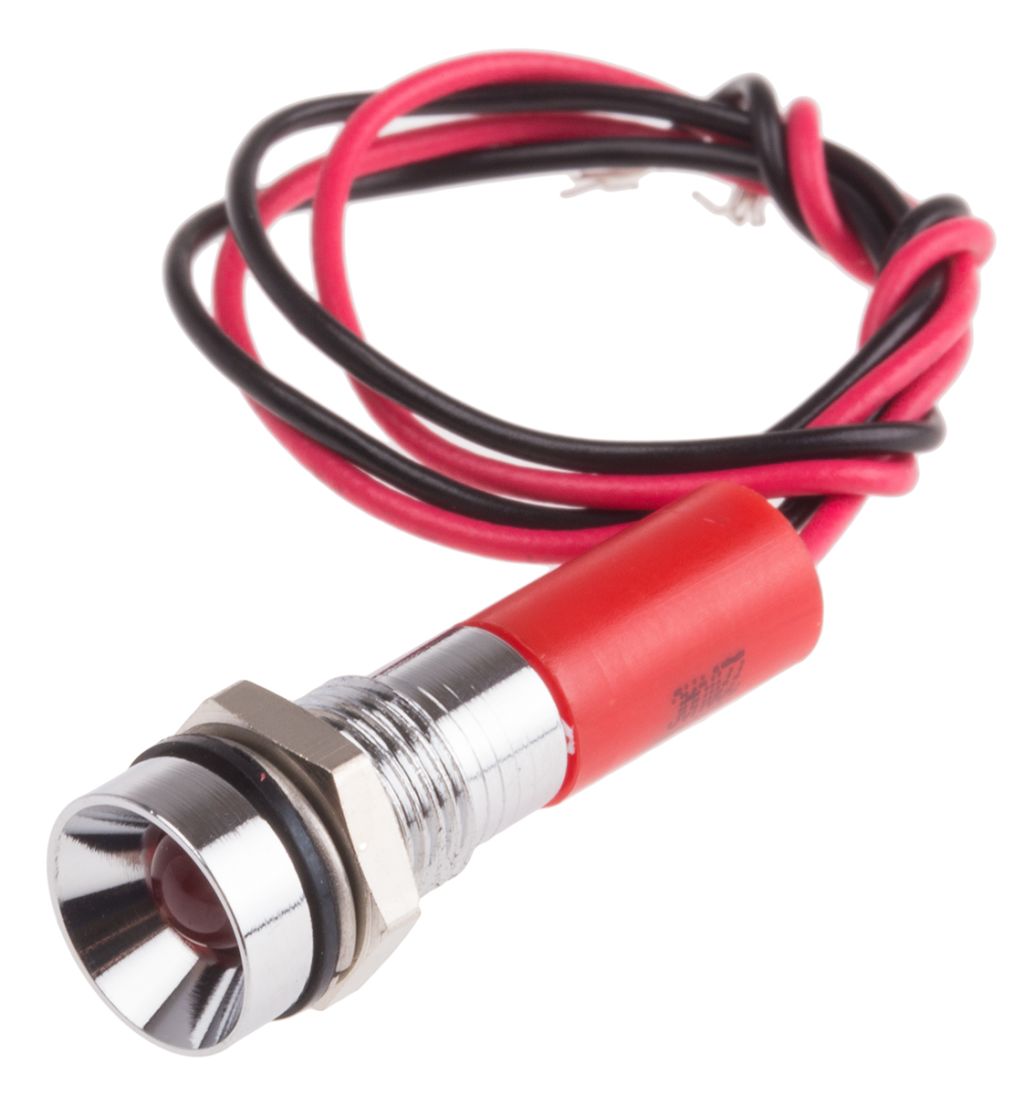 | Product description | RS PRO Red Indicator, 220V ac, 8mm Mounting Hole Size, Lead Wires Termination, IP67 |