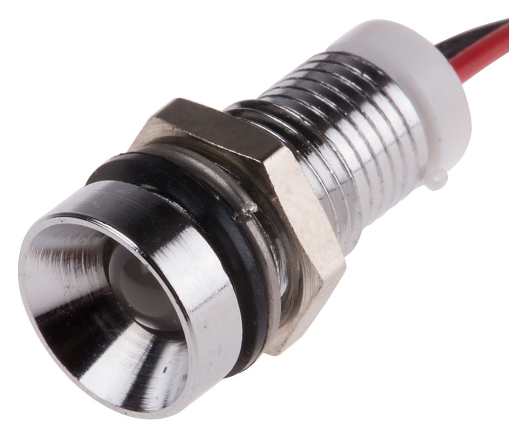These LED’s have been designed for panel mount applications and with an IP67 rating they are suitable for most environments including outdoor applications. They also have a wide operating temperature range of between -40 to +85 °C, further increasing the potential applications they may be used for. These 5mm LED’s require an 8mm panel cut-out and are supplied with a fixing nut and spring washer. They have a nominal 2 Vdc (no resistor) rating with an operational voltage Vop of 1.8 (min) to 2.5 (max) Vdc. Users can select from a variety of bezel finishes and bezel styles.