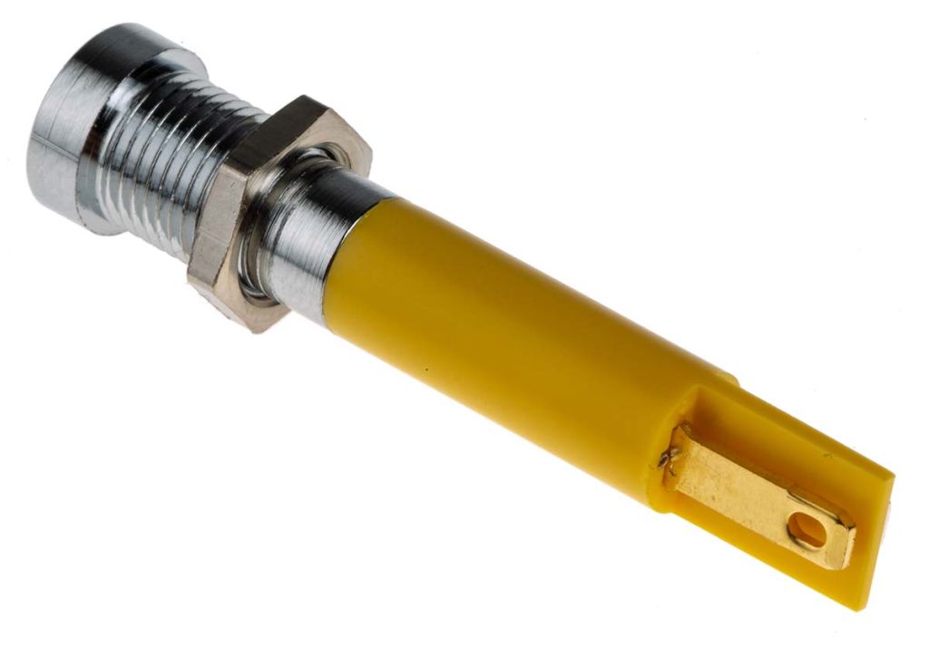 | Product description | RS PRO Yellow Indicator, 24V dc, 8mm Mounting Hole Size, Solder Tab Termination |