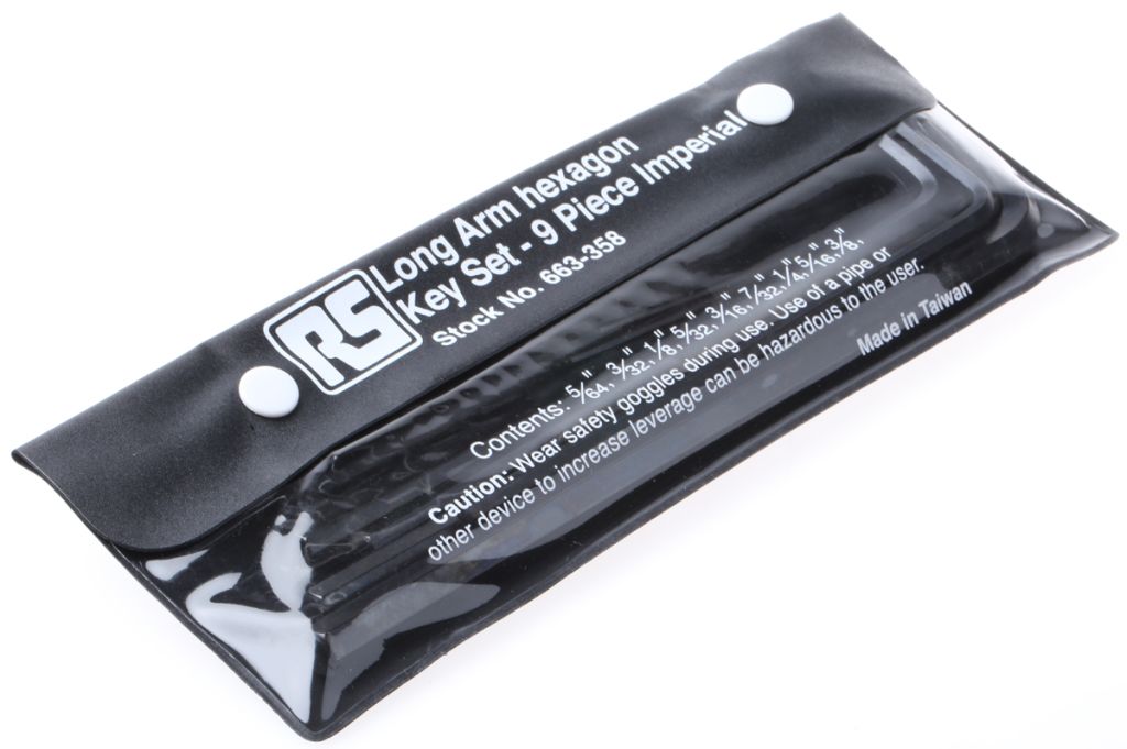 | Product description | RS PRO 9 piece Hex Key Set, L Shape 1/4in |