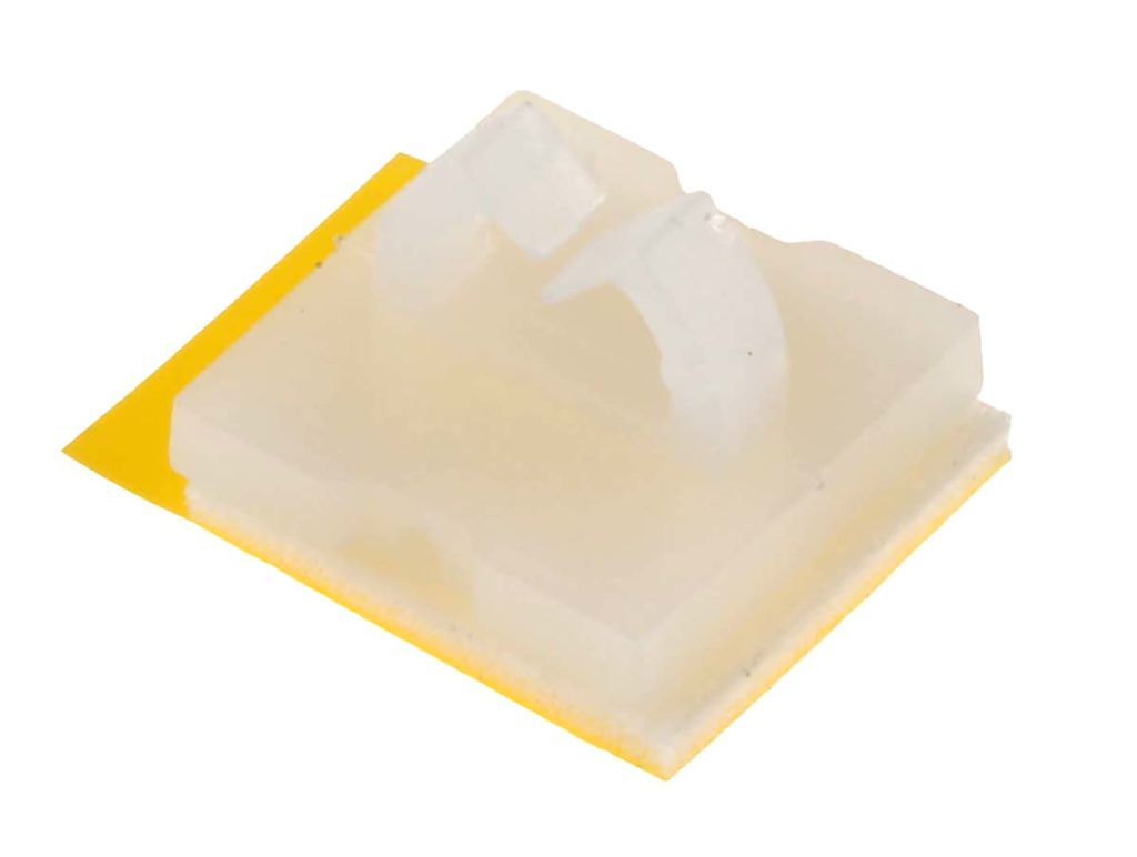 From RS PRO, this nylon self-adhesive cable clip is perfect for light duty cable management solutions. With a broad adhesive application area, and a lightweight body, the clip is incredibly easy to install on any flat, clean surface. Wires and cables can be easily slotted into and removed from the flexible clamp.