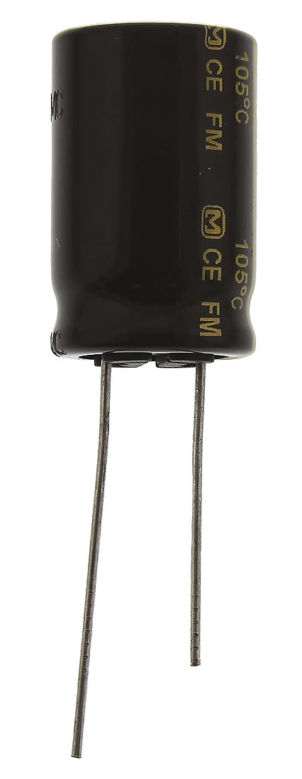 Panasonic FM Series Type A electrolytic capacitors offer low impedance (40% to 70% less than the Panasonic FC series) and high endurance. At +105°C, the endurance is 2000 hours to 7000 hours (depending on case size).