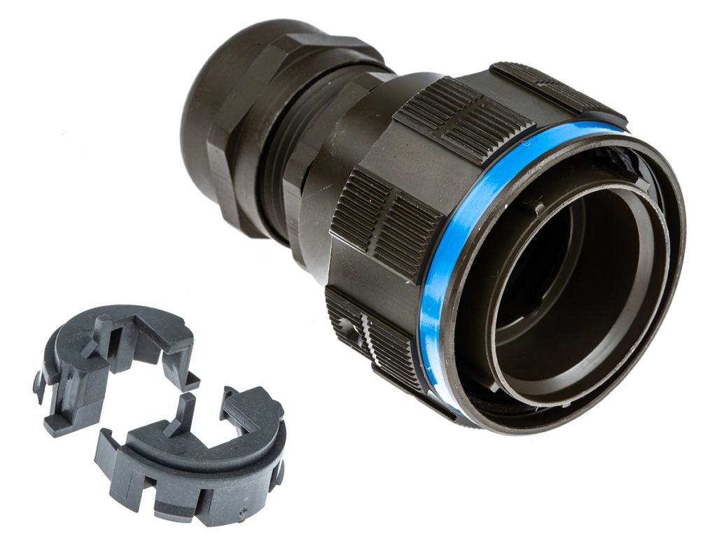 Stock number 447-9961 has a plastic gland with an aluminium shell with an olive drab cadmium plating.