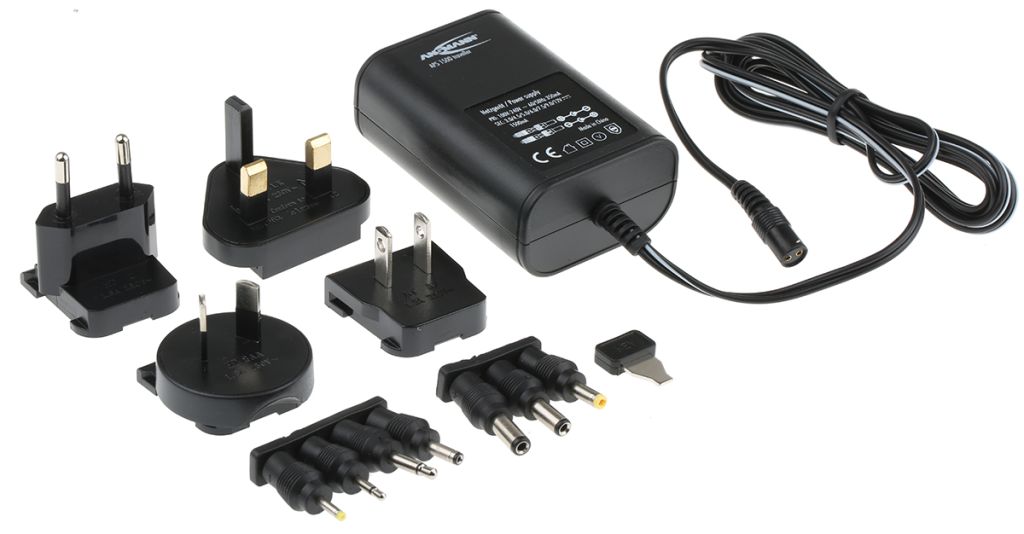 Product description Ansmann, 18W Plug In Power Supply 3 V dc, 4.5 V dc, 5 V dc, 6 V dc, 7.5 V dc, 9 V dc, 12 V dc, 1.5A, Level VI