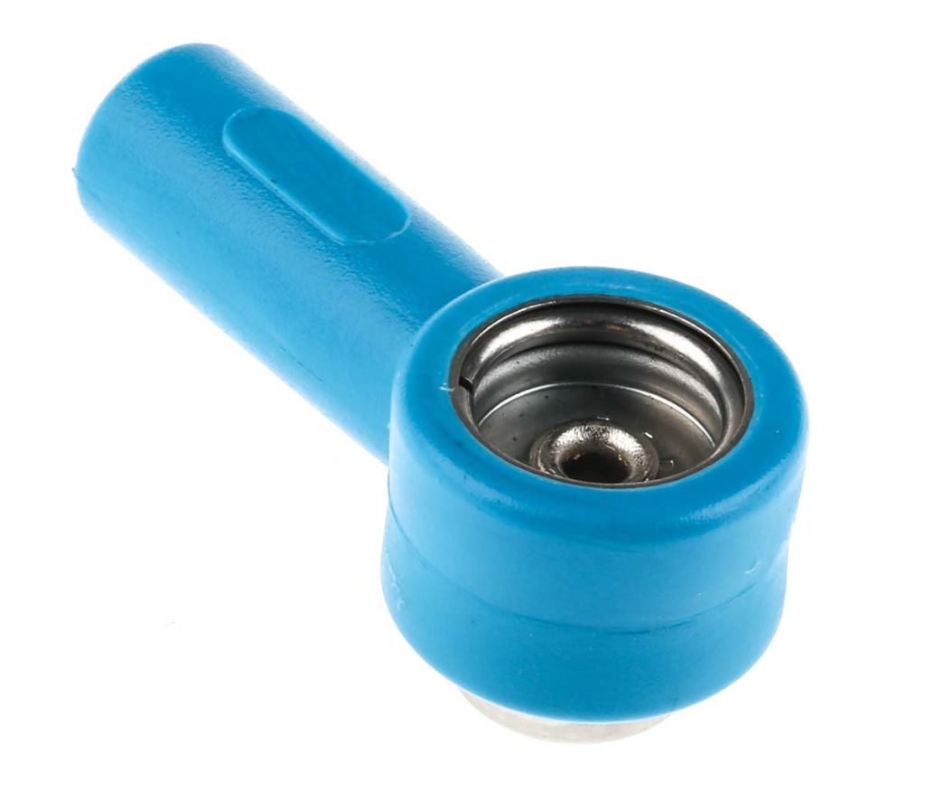 Converts 10 mm stud to 4 mm banana socket for wrist band cord attachment