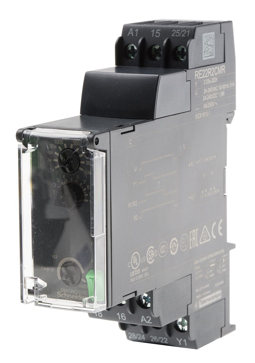 Schneider Electric DPDT Timer Relay, OFF Delay, 24 → 240V ac/dc 0.05 → 1s, DIN Rail Mount