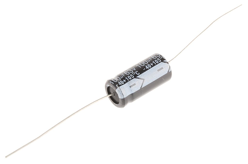 Product description RS PRO 100μF Electrolytic Capacitor 63V dc, Through Hole
