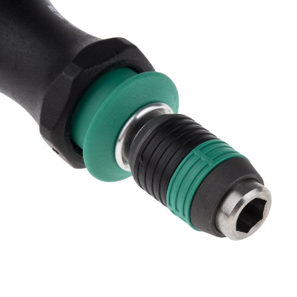 The handle has been designed to fit comfortably in the hand to prevent muscle fatigue, blisters and sores. A unique quick-release system is a joy to use, simply push the bit into the adaptor without moving the sleeve and subsequently, the lock activates. Each screwdriver bit no matter the length is held securely with no movement. To release the bit push the sleeve forward and remove …simple.