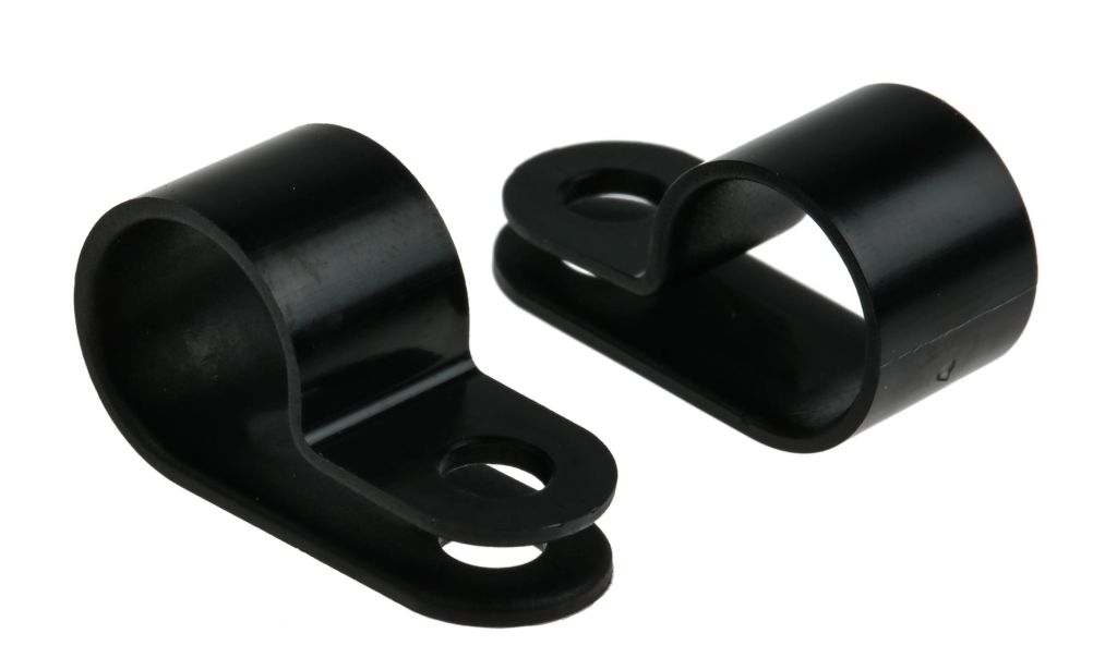 Manufactured from Polyamide, these P clips offer good temperature resistance and are very strong. The clips are able to secure cables of various sizes by offering a range of fixing holes — this feature means users do not have to stock a large range of clips.,For permanent or semi-permanent cable fixings. Their light weight makes them particularly suitable for use in the aerospace industry where minimising weight while retaining secure fixing is vitally important.