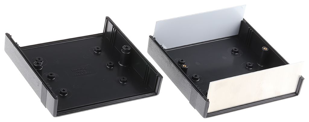 The Hammond 1598 series is a desktop electronic instrument case ideally suited for mounting printed circuit boards (PCBs). Moulded in flame retardant ABS plastic these enclosures are designed to meet IP54 protection against dust and splashing water. Two sets of vertical 1.5mm PC board guides are moulded into each half of the case, front and rear. The enclosure also has integral horizontal PC card mounts on Eurocard centres.