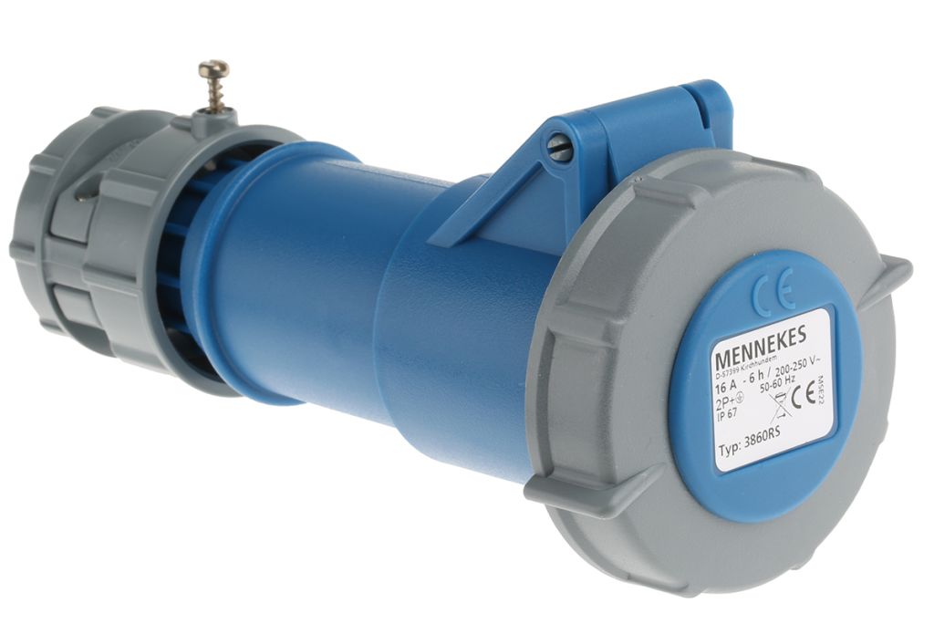 | Product description | MENNEKES, PowerTOP IP67 Blue Cable Mount 3P Industrial Power Socket, Rated At 16A, 230.0 V |